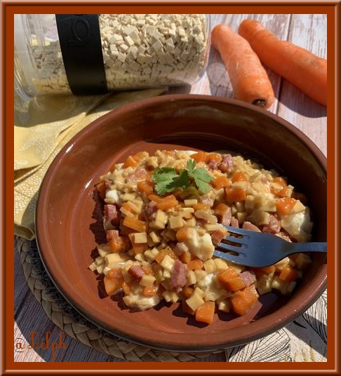 Sara que vous pouvez retrouver sur sa superbe page de cuisine Les douces gourmandises de Sara, a testé les crozets aux lardons et carotte.