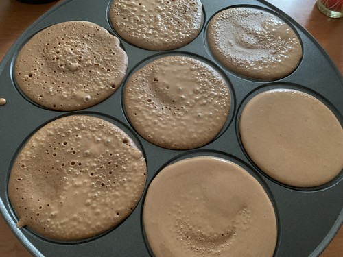 - Verser un peu de pâte ( 1 louche) dans une petite poêle anti adhésive ou légèrement huilé.