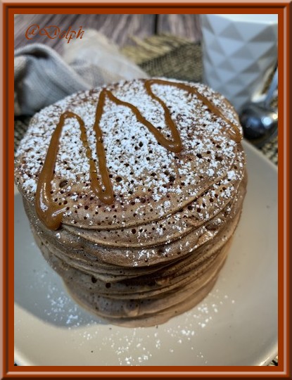 Une nouvelle tournée de pancakes, au chocolat pour les rendre encore plus gourmands. Ils sont peu sucrés alors vous pouvez vous faire plaisir avec un peu de sucre glace ou du caramel beurre salé..