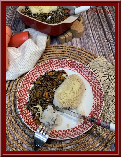 Sonia utilise son extra crisps, je n’ai pas ce matériel, j’ai donc utilisé mon four pour faire gratiner mon plat. Si vous avez cette option je vous propose de vous rendre chez Sonia pour la phase finale.