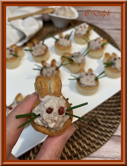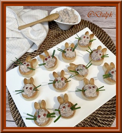 Une nouvelle idée d’apéro toute simple avec des ingrédients du placard. Rapide, simple et frais c’est parfait. J’ ai présenté les rillettes dans les petits lapins, gentiment offert par mon partenaire prêt à garnir.