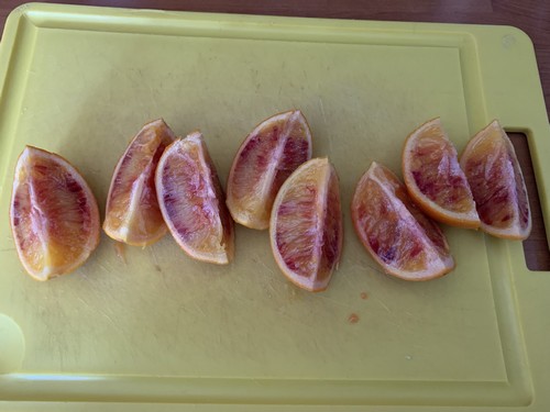 oranges sanguines ds recette originale mais j’avais pas donc oranges classiques !