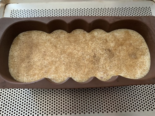 - Verser le mélange dans un moule à cake beurré puis saupoudrer de sucre vanille.