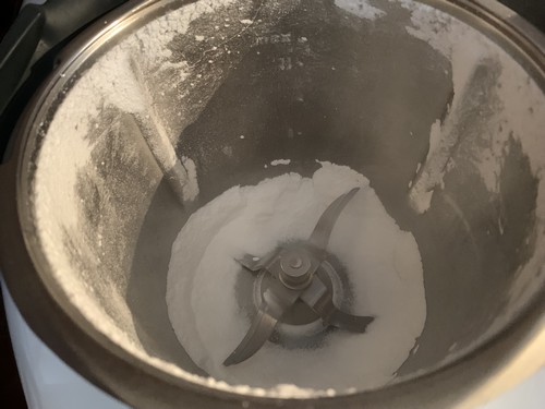 Rappel pour faire le sucre glace, verser le sucre semoule et mixer 10 sec/vit10.