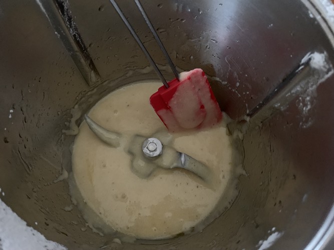 2. Dans le bol du Thermomix, mettre le sucre glace, la poudre d’amande et la farine puis mélanger 30sec/vit3, ajouter les blancs légèrement battus à l’aide d’une fourchette et mélanger 30 sec/vit3, puis verser le beurre fondu couleur noisette, enlever les impuretés à l’aide d’un tamis et mélanger à nouveau 30 sec/vit3.