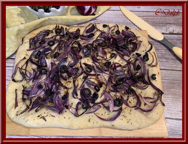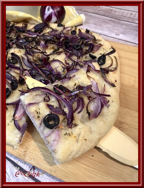 Oh là là ! J’adore les focaccia est avec des oignons rouges et des olives, c’est le top ! Elle est très belle, bravo !
