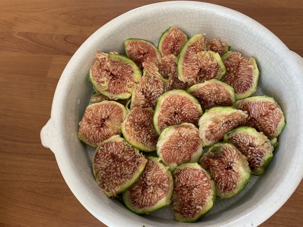 - Laver les figues en les passant rapidement sous l’eau puis les sécher sur un torchon. Les couper en deux et les répartir dans un plat à four beurré.