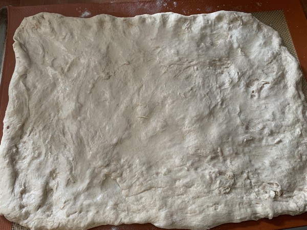3. Déposer la pâte sur une toile silpat et l’étaler sur toute la surface en l’étirant en  faisant légèrement pression du bout des doigts.