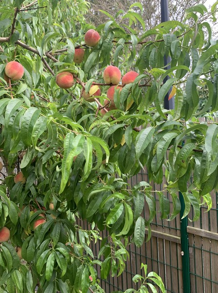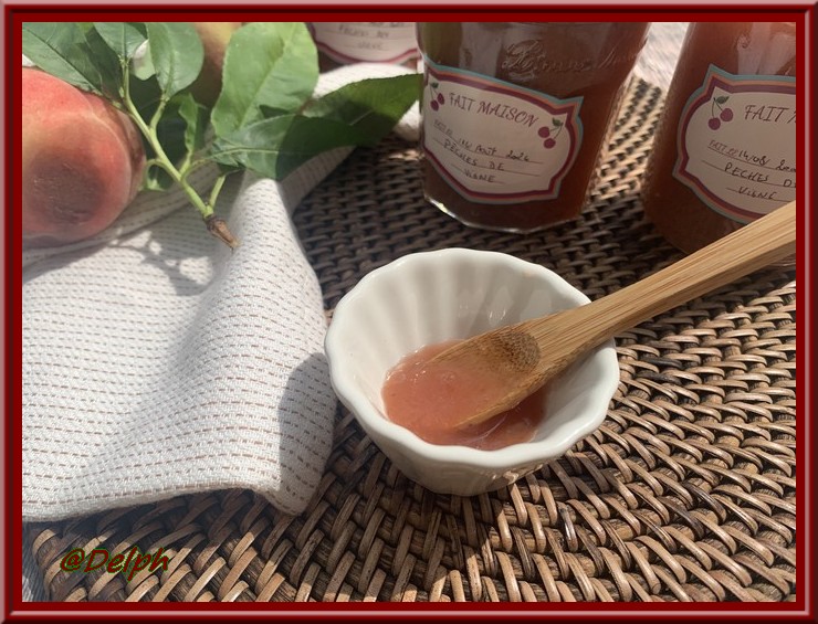 Cette année j’ai fait le stock de confiture pour l’hiver, après les framboises, les figues, les prunes, ce sont les pêches. C’est chez ma belle-maman que j’ai fait la récolte elle a trois pêchers qui croulent sous les fruits.