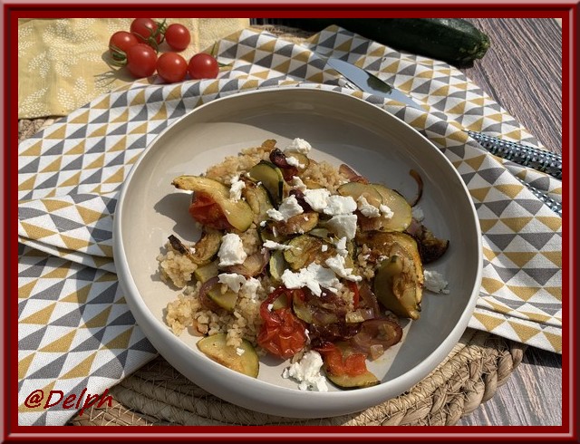 Voici un plat tout simple qui pourra accompagner un poisson ou une viande blanche. Pour ma part je l’ai dégusté seul. Si vous n’aimez pas le boulghour vous pouvez le remplacer par du quinoa ou du blé selon vos goûts.