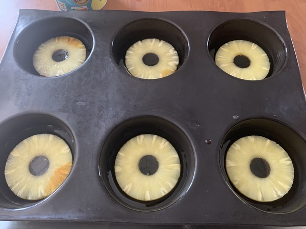 2. Repartir une fine couche de caramel dans les empreintes et ajouter une tranche d’ananas.