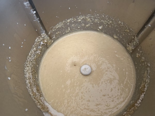 - Mélanger énergiquement le beurre avec le lait et les œufs.