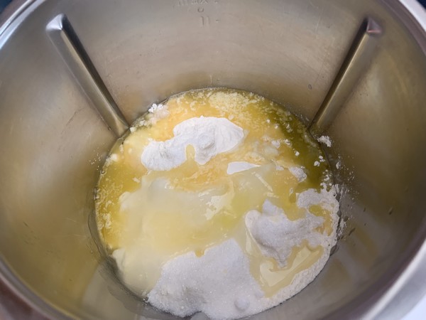 - Émietter la levure fraîche avec le lait dans le bol du Thermomix puis faire chauffer 2 min/37°C/vit1, laisser quelques minutes reposer puis ajouter la farine, le sucre, les pincées de sel, le beurre fondu, et l’œuf, puis pétrir 8 minutes.