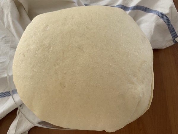 - Mettre la pâte dans un saladier légèrement fariné puis la couvrir avec un torchon humide et laisser lever dans un endroit chaud environ 1h30.