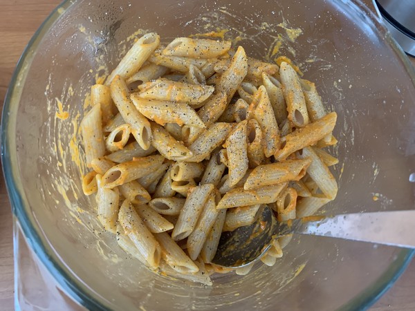 - 160 g de pâtes complètes ici des penne