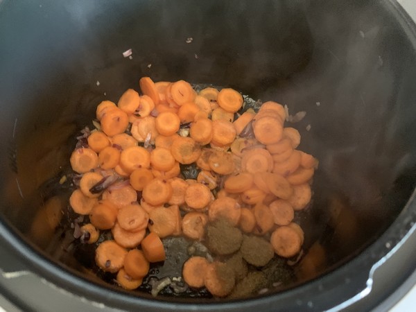 4. Verser le bouillon puis passer en mode sous pression pour 15 minutes.