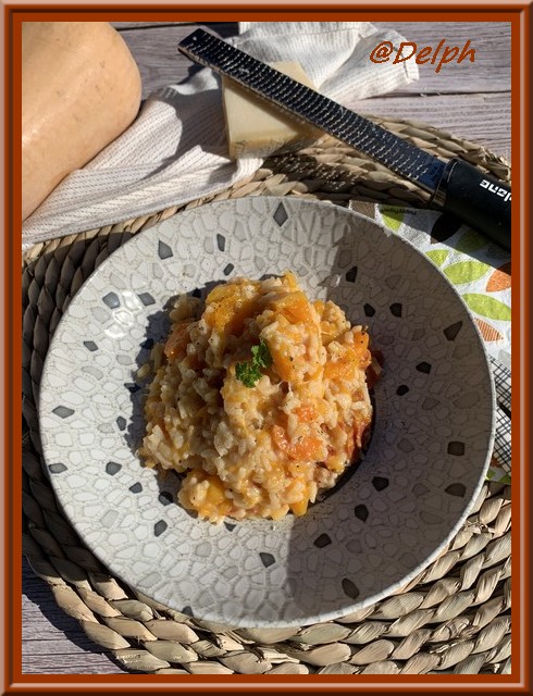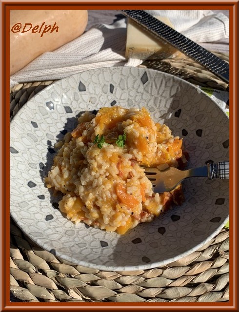 Un nouveau risotto de saison avec ma courge préférée la Butternut. Elle vient toujours de chez mon oncle qui m’avait bien gâtée. Bien sûr vous pourrez prendre la courge de votre goût. Si vous n’aimez pas le chorizo, vous pouvez le remplacer par du bacon, ou bien ne pas mettre de viande.
