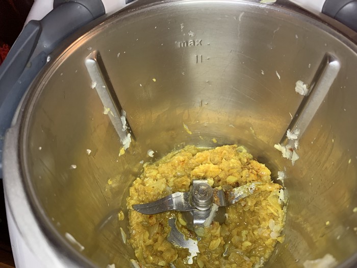 - Ajouter les épices et cuire encore 3min/100°C/couteau inversé/Vit mijotage.