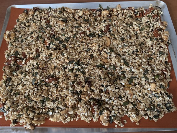 J’aime beaucoup faire mon granola sucré pour diversifier mes petits déjeuners. Ici, c’est une version salée que je vous propose. C’est à nouveau ma collègue Sophie qui m’a fait tester un granola salé qu’elle avait réalisé, elle m’a gentiment partagé la recette. Vous pouvez en trouver un autre que j’avais préparé avec un velouté de carottes. Le granola salé peut donc se manger avec une salade, ou potage… Il est préférable de le conserver sous vide pour qu’il garde son croustillant.