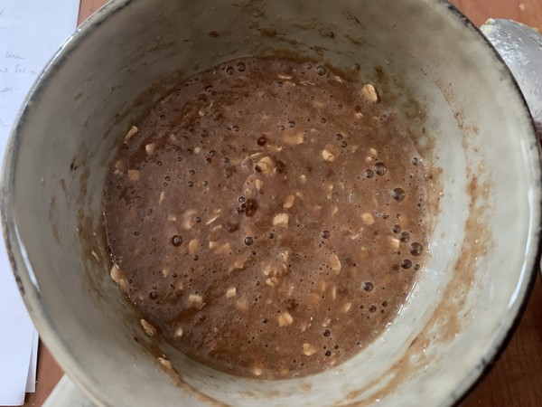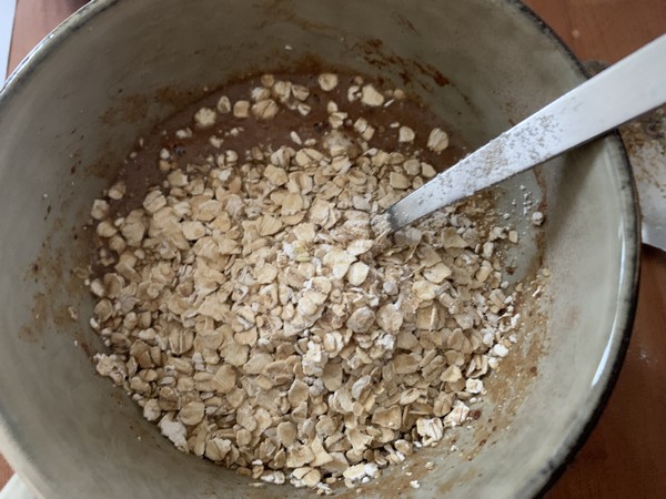 - Mélanger le tout puis incorporer les flocons d’avoine . Mélanger bien afin d’obtenir une préparation bien homogène.