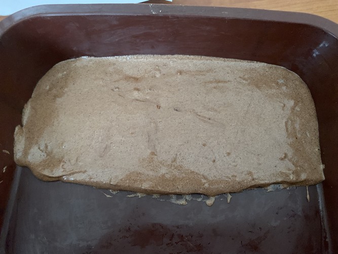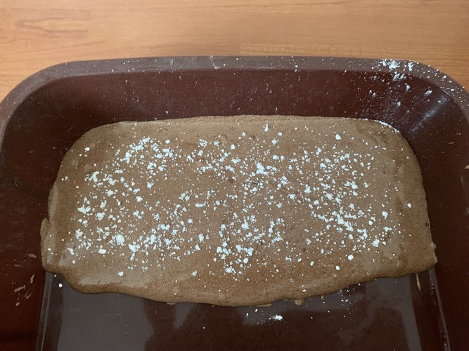3. Garnir un moule plat avec cette préparation, lisser avec la spatule coudée et saupoudrer de sucre glace.