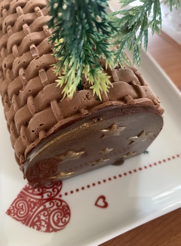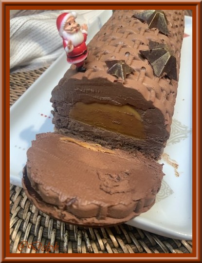 Voici une bûche ultra gourmande, chocolat, caramel, noix de pécan se marient à merveille pour vous régaler. Cette bûche est rapide d’exécution, vous pourrez la préparer quelques jours en avance, je l’ai réalisé sur deux jours, l’insert caramel en premier, puis le biscuit et la mousse le jour suivant et j’ai placé au congélateur jusqu’au jour de la dégustation.