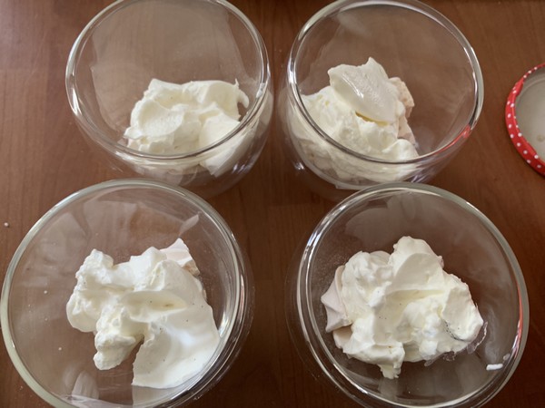Et voici un petit dessert de dernière minute. Je vous conseille de préparer votre chantilly et vos meringues à l’avance et de faire le montage au moment de la dégustation, cela gardera le croquant des meringues.