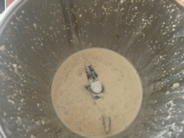 - Puis mettre, la banane coupée en morceaux, le skyr, l’œuf, le miel et le lait puis mélanger 20sec/vit3.