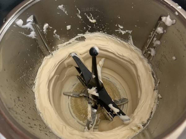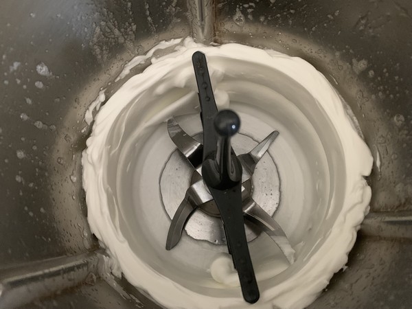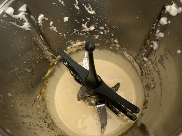 3. Mettre les blancs d’œufs dans le bol donner un coup de turbo, puis insérer le fouet et monter les blancs en neige 2 min/vit 3,5 sans le couvercle. Réserver. Inutile de rincer le bol et le fouet.