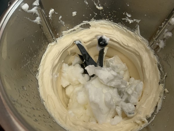 5. Ajouter le mascarpone, mélanger à nouveau puis incorporer doucement les blancs, bien mélanger.