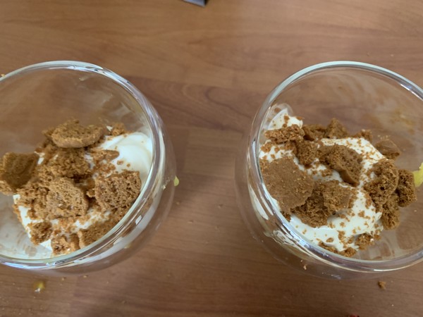 8. Pour les verrines alterner avec des biscuits spéculoos écrasés.