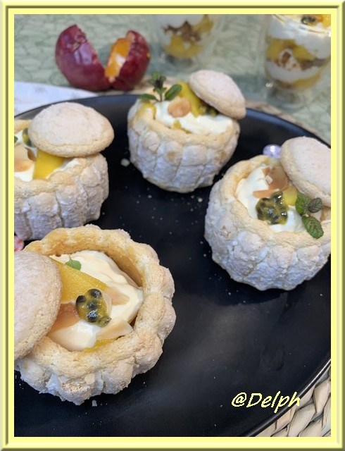 1. C’est super joli présenté ainsi en mini charlotte ! ça ajoute un plus gourmand aux verrines. Pour un dessert festif c’est top sans se fatiguer ! bravo. gros bisous delphine