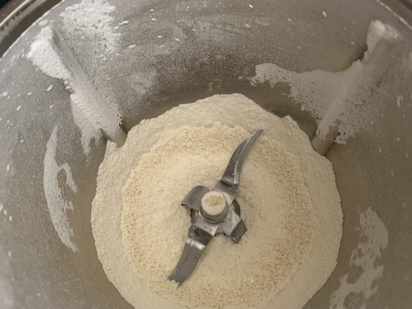 - Dans le bol du Thermomix mettre le sucre glace, la farine, la levure, la poudre d’amande et mélanger 20sec/vit3.
