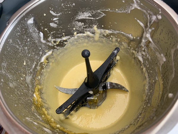 - A la place mettre les jaunes et le sucre, laisser le fouet puis blanchir 2min/Vit3. Ajouter le jus d’orange, la farine, la levure, le beurre fondu et le lait puis mélanger 40sec/vit3.