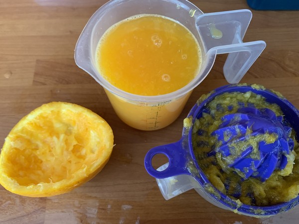 - 250 ml de jus d’orange ( 2 ou 3 oranges en fonction de leur taille)