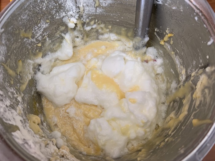 - Monter les blancs en neige et incorporer délicatement au mélange précédent.