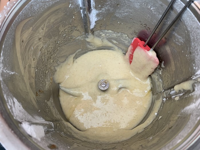 - Incorporer le beurre noisette et mélanger pour bien l’incorporer et que la pâte soit bien lisse.