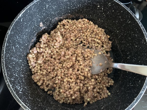 - Pour le sarrasin: le rincer puis faire chauffer votre eau à couvert, lorsqu’elle est à ébullition, verser le sarrasin égoutté, lorsque l’eau revient à ébullition laisser chauffer 5 minutes à couvert, puis hors du feu garder la casserole couverte et attendre 20 minutes que l’eau soit toute absorbée.