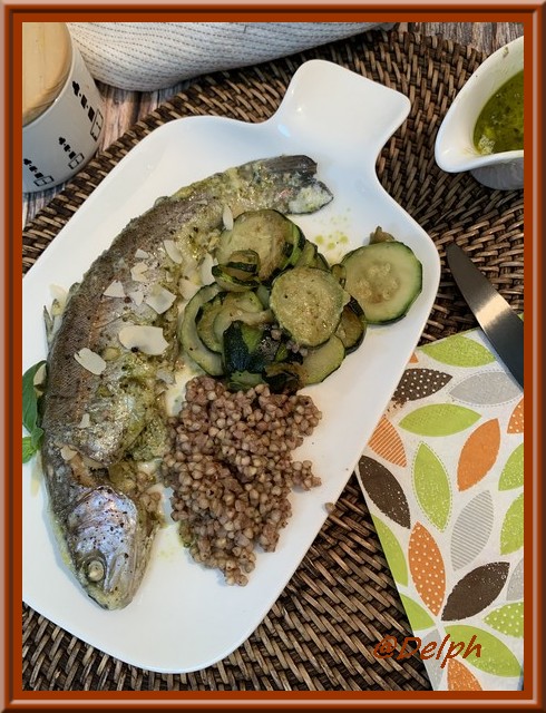hum excellent ce plat de poisson délicatement parfumé avec le pesto, bon samedi