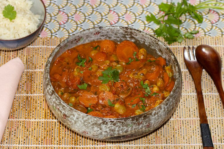 Ma chère Jackie, du magnifique blog "Jackie cuisine", m'a fait l'honneur de venir s'inspirer de mon curry de fèves, carottes et saumon. Jackie n'a pas mis de poisson, mais elle a accompagné son curry de riz.