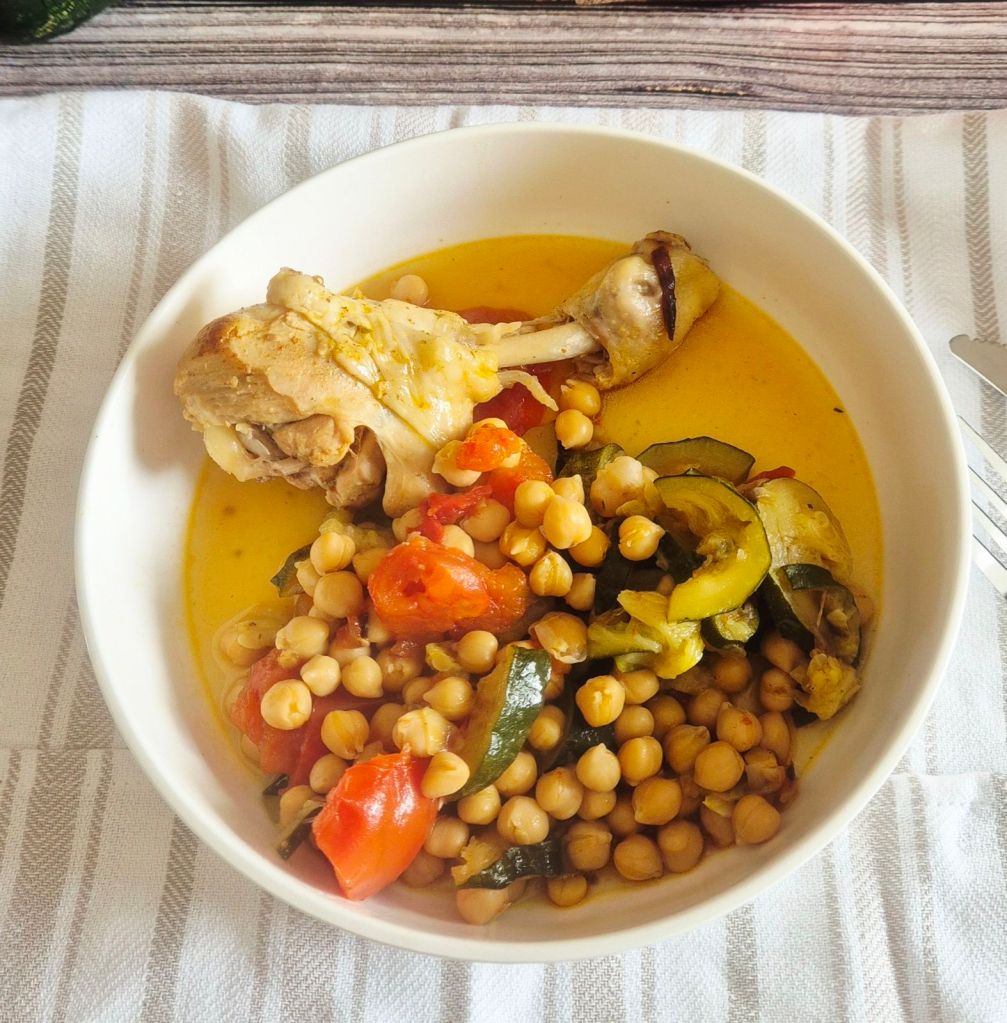 Sonia qui nous propose des recettes légères sur son blog " La cuisine de Boomy" et qui est aussi l'organisatrice du jeu Tests de recettes entre blogueurs est venue tester les pilons de poulet aux courgettes, tomates et pois chiche.
