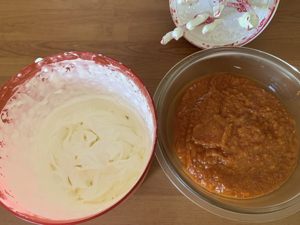 - Monter la crème fleurette en chantilly, j’utilise mon speedy chef, puis la mélanger avec la purée d’abricots, enfin avec la meringue à l’italienne.