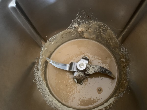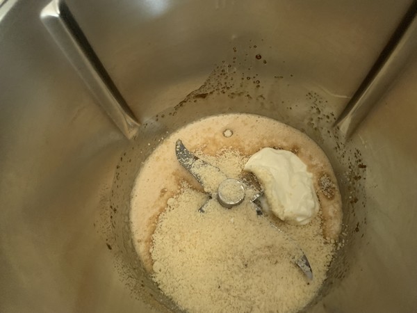 1. Mettre l’œuf et le sucre dans le bol du Thermomix et mélanger 2 min/vit3, ajouter la poudre d’amande et la crème, et mélanger 30sec/vit3.