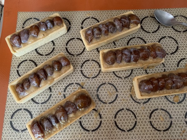 2. Disposer vos fonds de tartelettes sur une grille recouverte d’une toile silpat, puis y verser la crème.