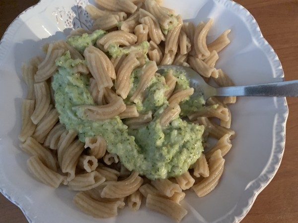 Une nouvelle recette express, très rapide à réaliser. Le brocoli est ici utilisé pour faire une délicieuse sauce qui vient enrober les pâtes. J’ai choisi des pâtes semi-complètes qui sont fabriqués dans mon département l’Essonne. Elles s’appellent les élégantes, c’est original pour un nom de pâtes.