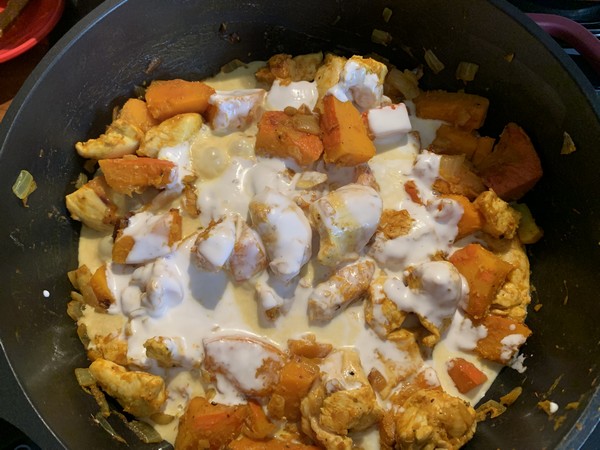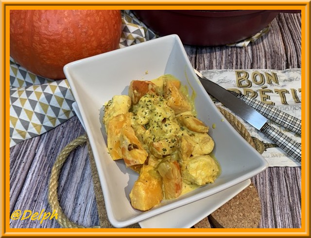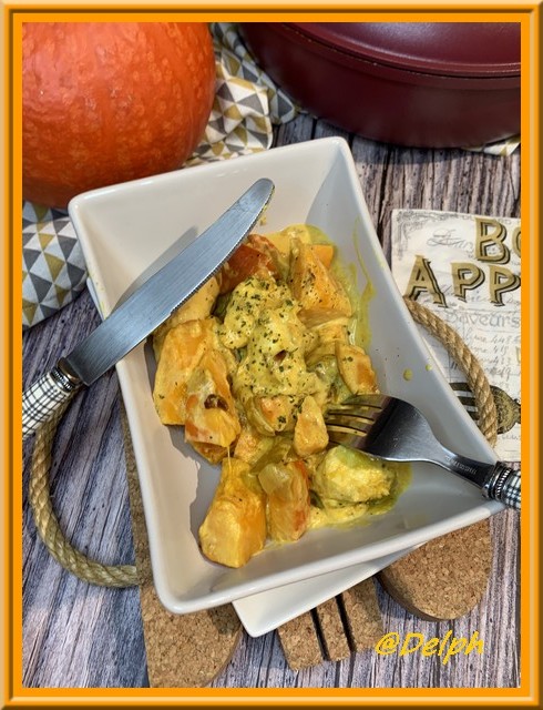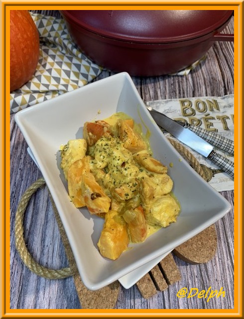 Un beau plat de saison. Le potimarron doit bien se marier avec les épices et adoucir le plat.
