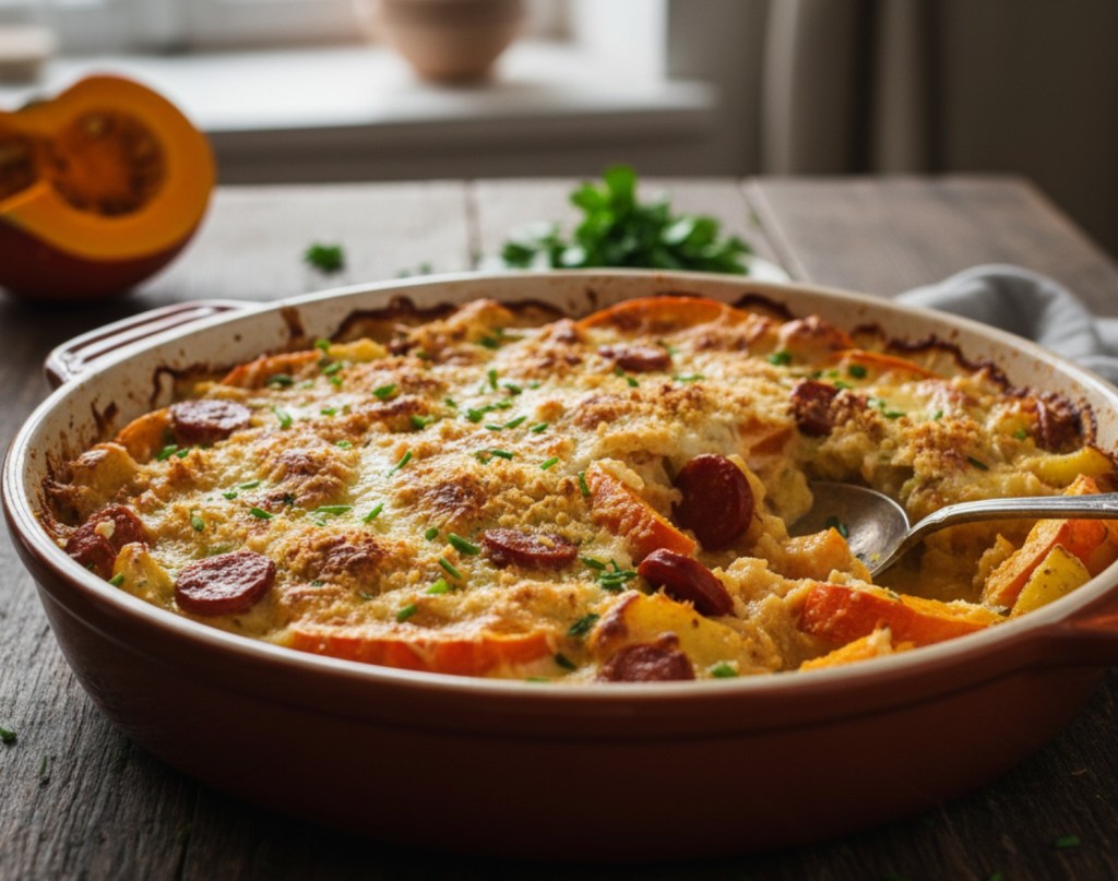 Les délices de Sandy, que vous pouvez retrouver sur sa page Instagram ou Facebook, s'est inspirée du gratin de potimarron, pommes de terre et chorizo.