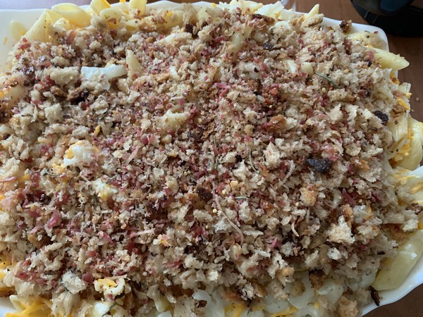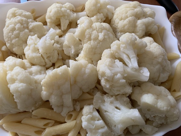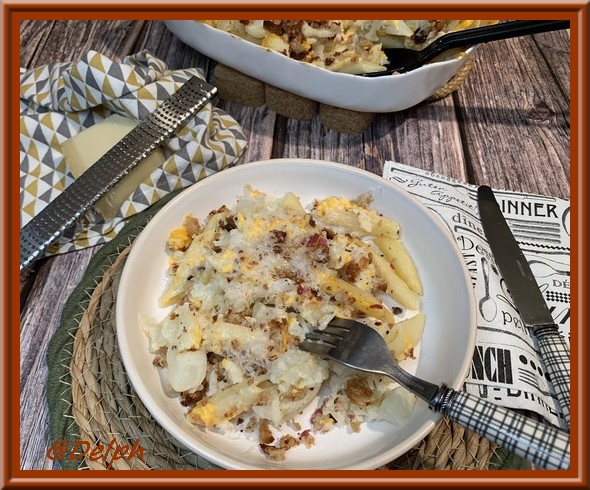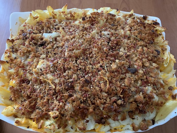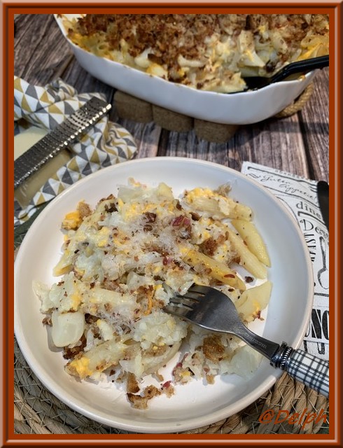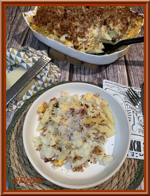 Entre le mélange pates et chou-fleur et la chapelure, cette recette est bien originale.