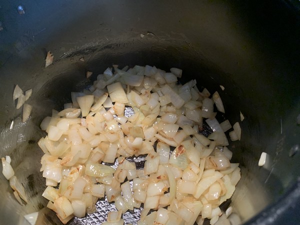 - Mettre le Cookéo en mode dorer, verser l’huile puis y faire revenir l’oignon 1 minute, ajouter les champignons surgelés ou frais et laisser dorer encore 2 minutes, mélanger régulièrement.
