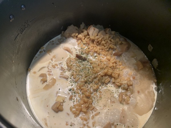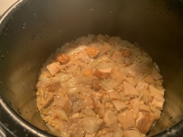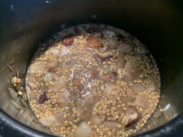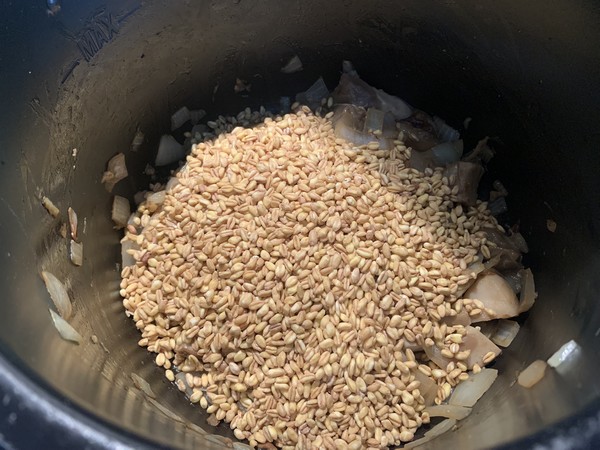 - Ajouter le blé, le bouillon, puis passer en mode sous pression pour 10 minutes.
